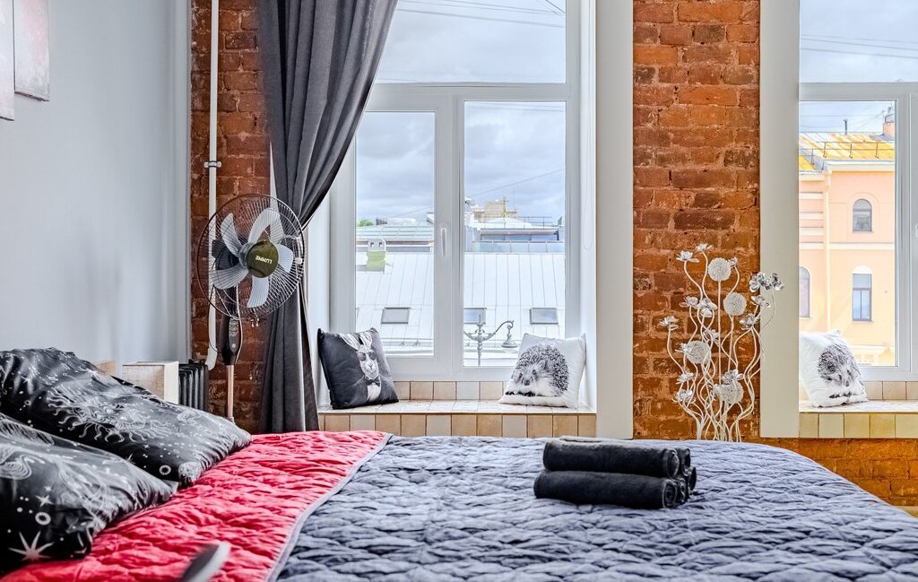 -Современный ремонт в стиле Лофт, 2 окна с видом на Лиговский проспект с 4 этажа.