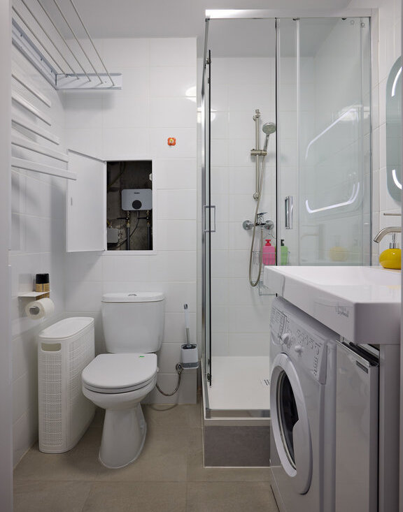 1. Вместительный пенал и тумба в ванной.