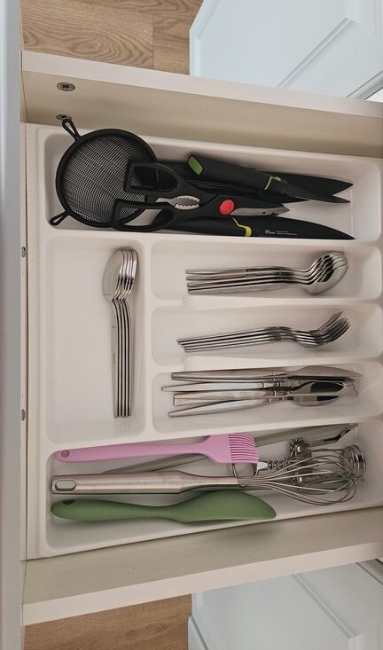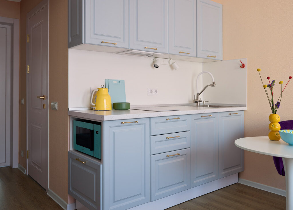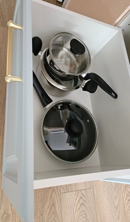 · Полный комплект посуды: столовые приборы, сковорода, кастрюли, кухонные мелочи (лопатки, терка и т.д.).