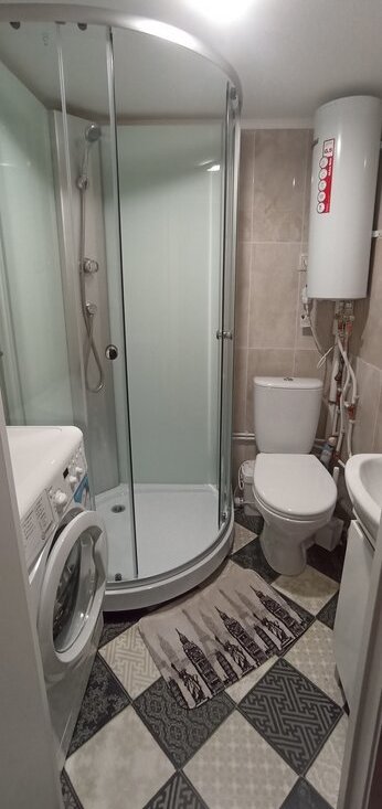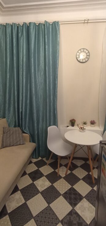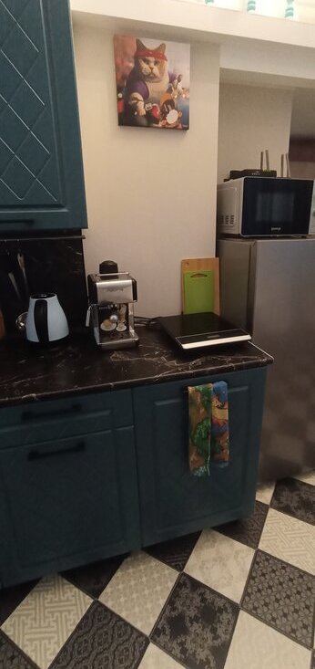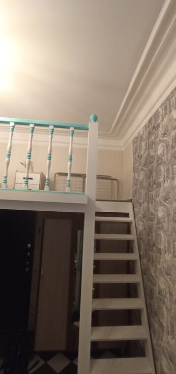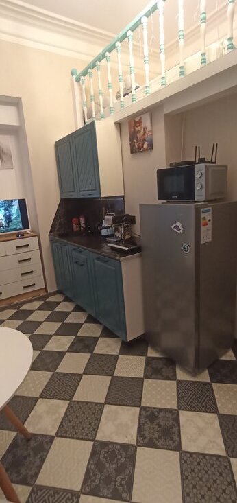 В студии есть диван двухместный, раскладывается, шкаф купе, стол с 2-мя стульями, комод, телевизор с приставкой, на втором этаже матрас 140*200 , тумба , сушилка, гладильная доска, на кухне плита электрическая , чайник электрический, кофеварка, микроволновка, холодильник, стиральная машина. Есть интернет. Арендная плата 40т.р.+КУ