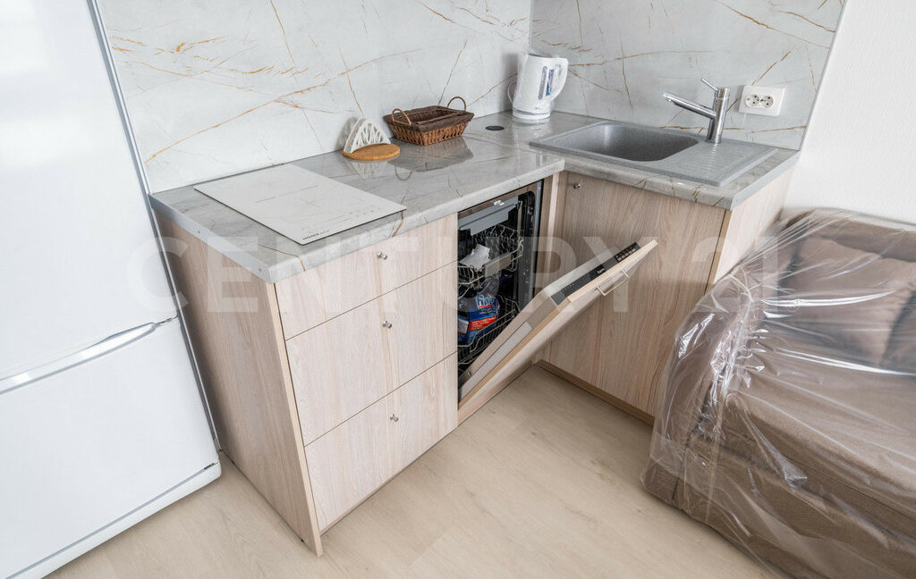 В квартире есть: двуспальная кровать (160х200), раскладной диван, большой шкаф и комод для хранения вещей, обеденный и рабочий столы, стулья. Кухня: посудомоечная машина, холодильник, индукционная варочная панель, микроволновая печь, электрический чайник, посуда. Стиральная машина в ванной, пылесос и сушилка для одежды. В прихожей расположен встроенный шкаф, при входе место для верхней одежды и обуви.
