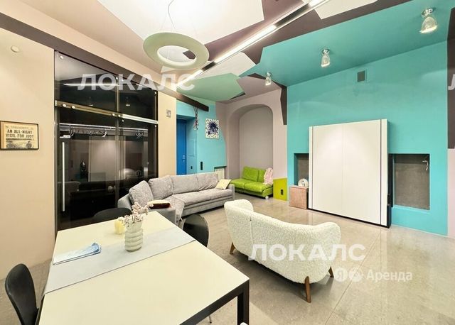 Сдаётся студия площадью 53 кв.м. с дизайнерским ремонтом на 1 этаже в 5-этажном доме на срок от 11 месяцев. Из техники есть: