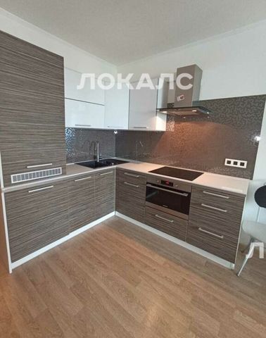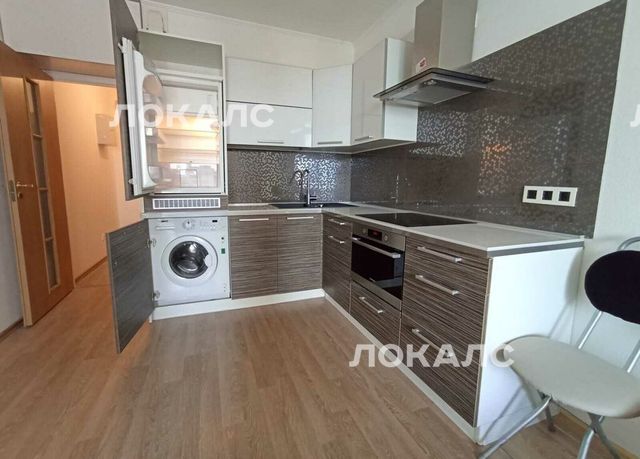 Встроенная кухня, варочная панель, духовой шкаф, вытяжка, холодильник, стиральная машина.