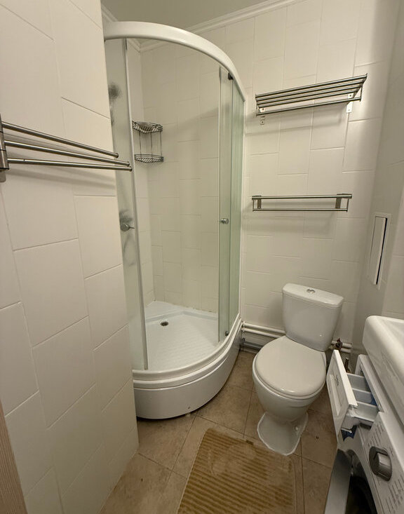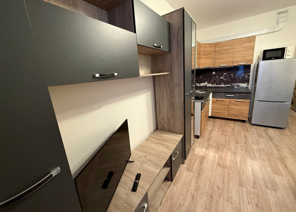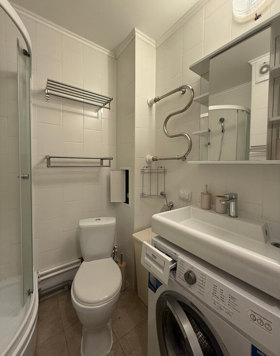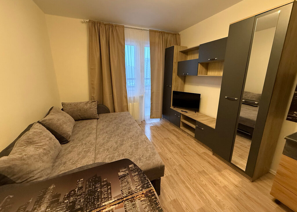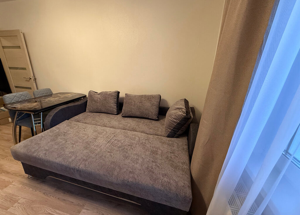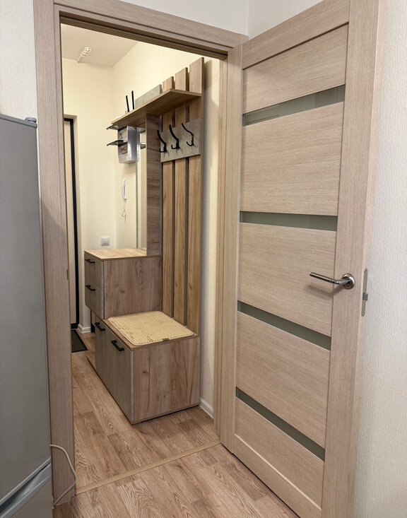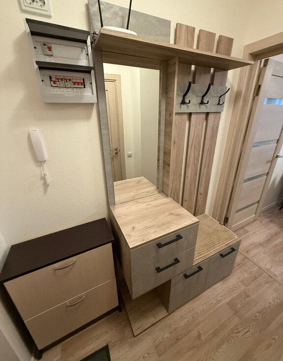 В квартире есть все необходимое: мебель и техника. Оборудованная кухня, столы и стулья, холодильник, микроволновка, стиральная машина, шкаф в прихожей, раскладной диван.