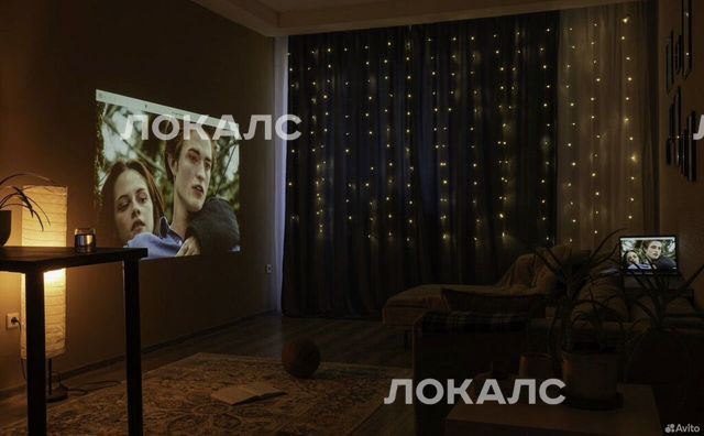 В зале: большой гостевой диван (не раскладной), проектор для просмотра фильмов, ковер, рабочая зона. Выход на балкон из гостиной.