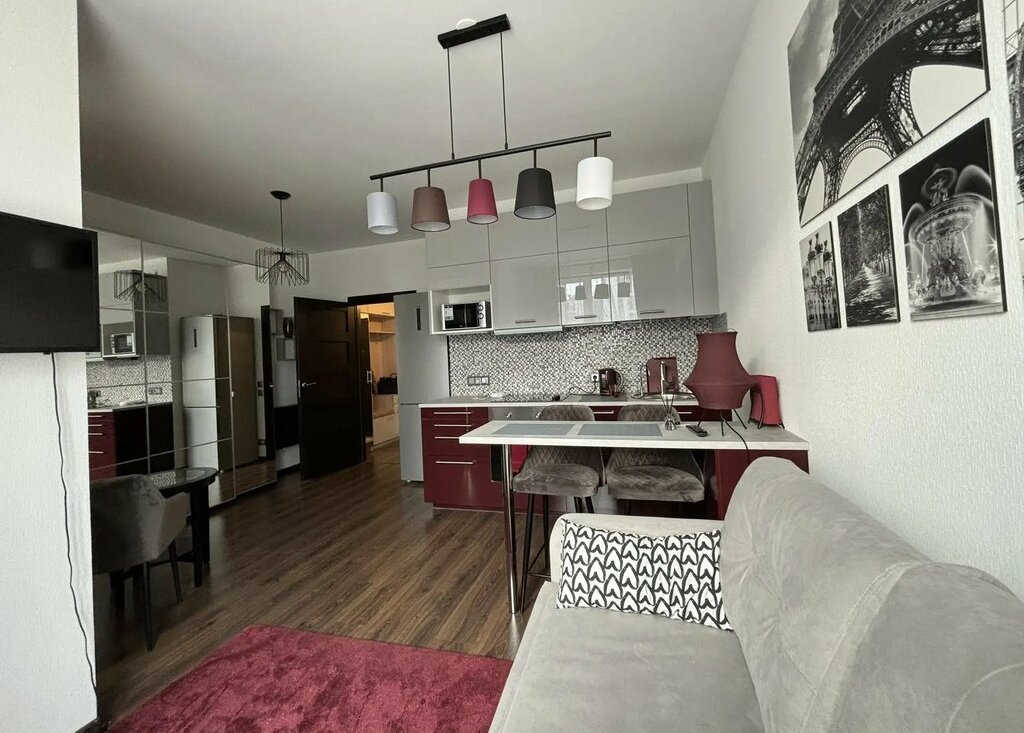 В квартире сделан ремонт в светлых тонах, установлена новая современная мебель: вместительные шкафы, удобные кресла, диван-кровать фирмы Аскона, оборудовано небольшое удобное рабочее место, в комфортной кухонной зоне есть вся необходимая техника, включая посудомоечную машину, электрическую плиту и духовой шкаф, установлен фильтр для воды.
