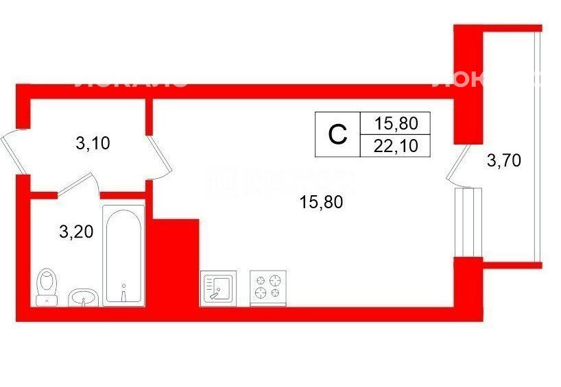 Квартира-студия: Санкт-Петербург, Новолитовская улица, 4 (22.1 м²)