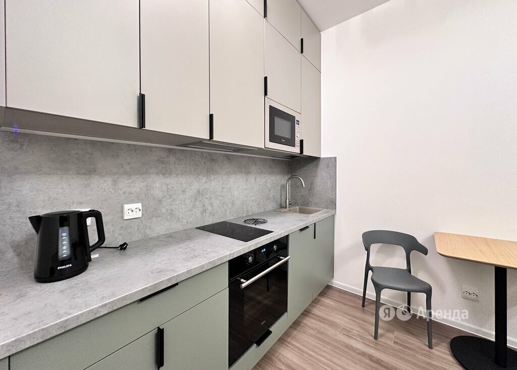 Сдаётся студия площадью 23 кв.м. с евроремонтом на 2 этаже в 18-этажном доме на срок от 11 месяцев. Из техники есть: