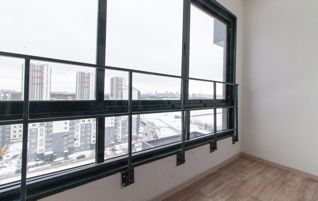 Большой застекленный балкон. Панорамные окна в комнате. Много солнца.