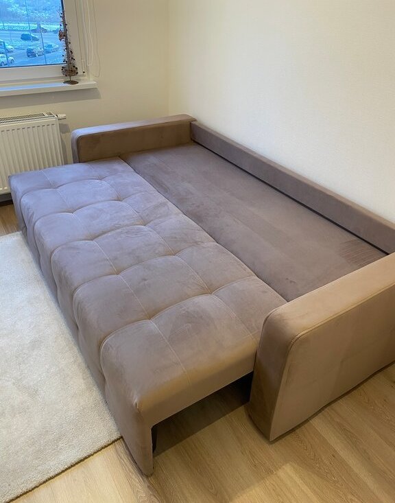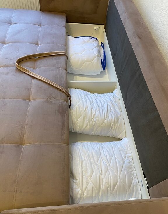 В гостиной - раскладной диван. В разложенном виде 2 полноценных спальных места.