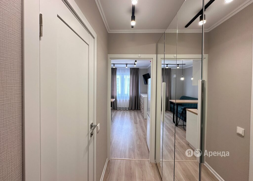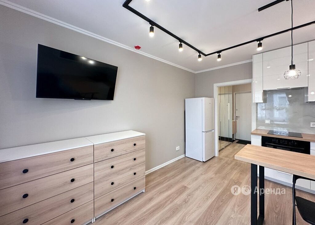 Сдаётся студия площадью 21 кв.м. с евроремонтом на 19 этаже в 19-этажном доме на срок от 11 месяцев. Из техники есть: