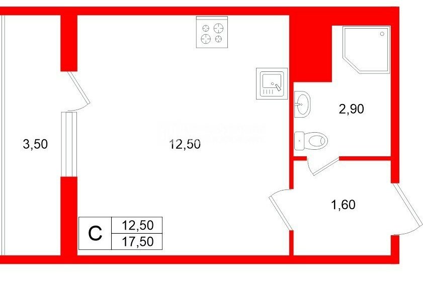 Квартира-студия: Санкт-Петербург, Пахомовская улица, 21 (17.5 м²)