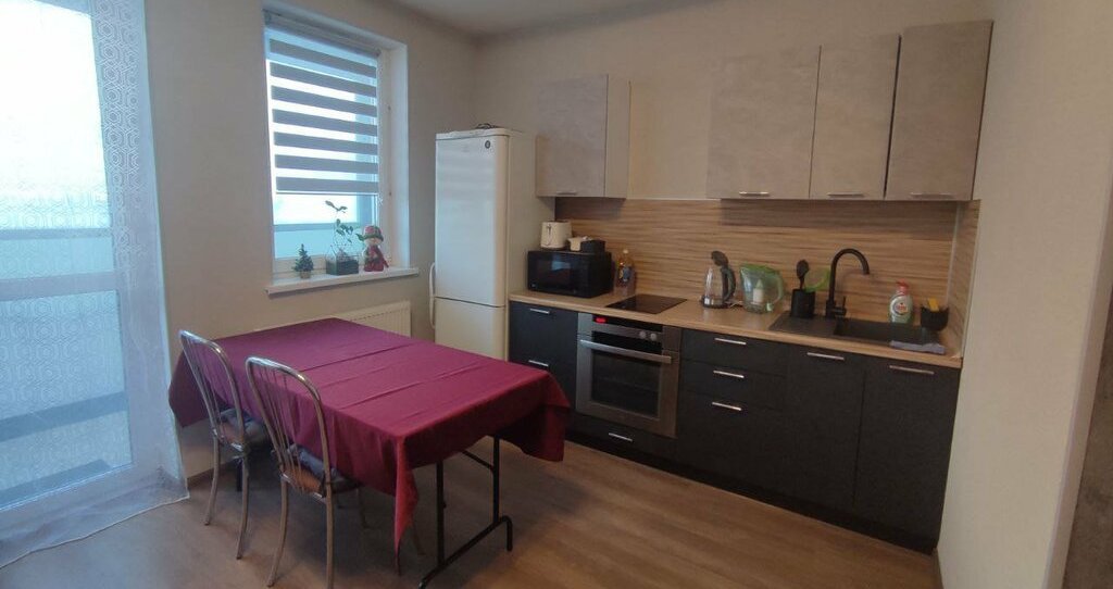 Кухня оборудована необходимой техникой: холодильник, варочная поверхность на две конфорки, духовой встроенный шкаф, электрический чайник, тостер и микроволновая печь. Ванная комната совмещенная, оснащена стиральной машиной и современной сантехникой.
