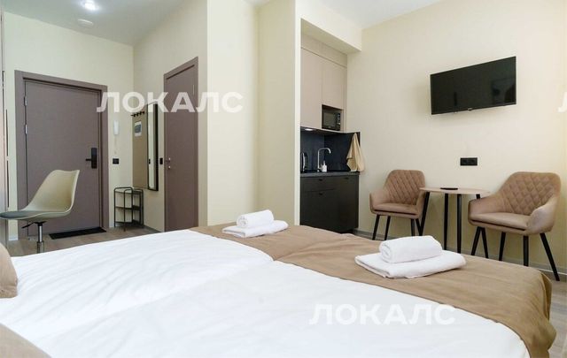 В студии свежий ремонт и есть все необходимое: мебель, телевизор, холодильник, варочная панель, микроволновая печь, чайник, фен.