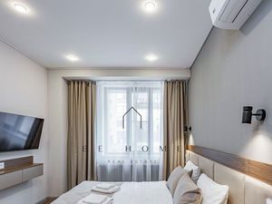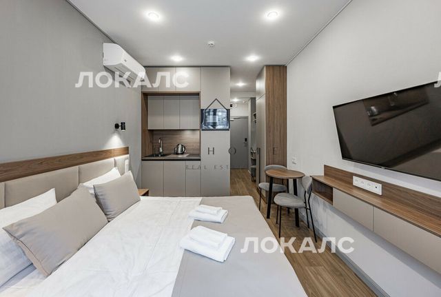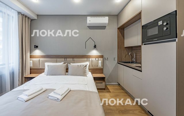 В студии выполнен качественный ремонт. Двухспальная кровать, обеденная зона, места для хранения вещей, совмещенная ванная комната. Есть вся необходимая техника для комфортного проживания.