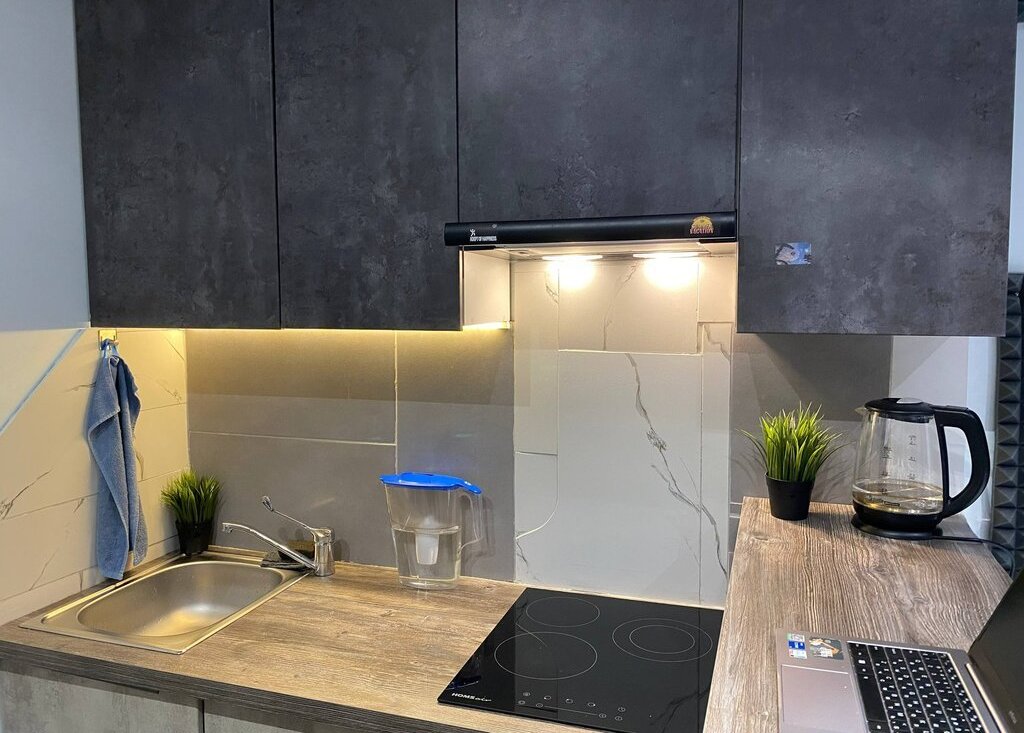 Светлая уютная студия на 8 этаже, с настоящим дизайнерским ремонтом, а не его подобием. В доме 4 лифта: ждать меньше 30 секунд.