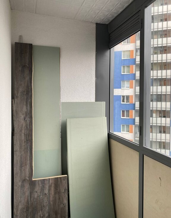 На лоджии лист гипрока и часть столешницы — их перемещение обсуждаемо