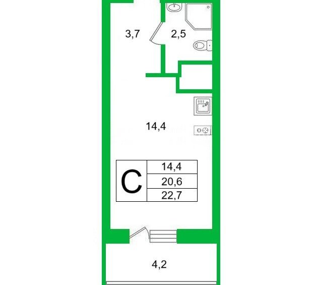Квартира-студия: Санкт-Петербург, Плесецкая улица, 10 (20.6 м²)