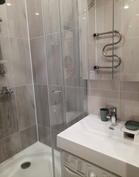 В квартире качественный ремонт. Ламинат, натяжные потолки, кафель, душевая кабина. Вся бытовая техника, варочная панель, СВЧ, 2-камерный холодильник, TV, стиральная машина-автомат.