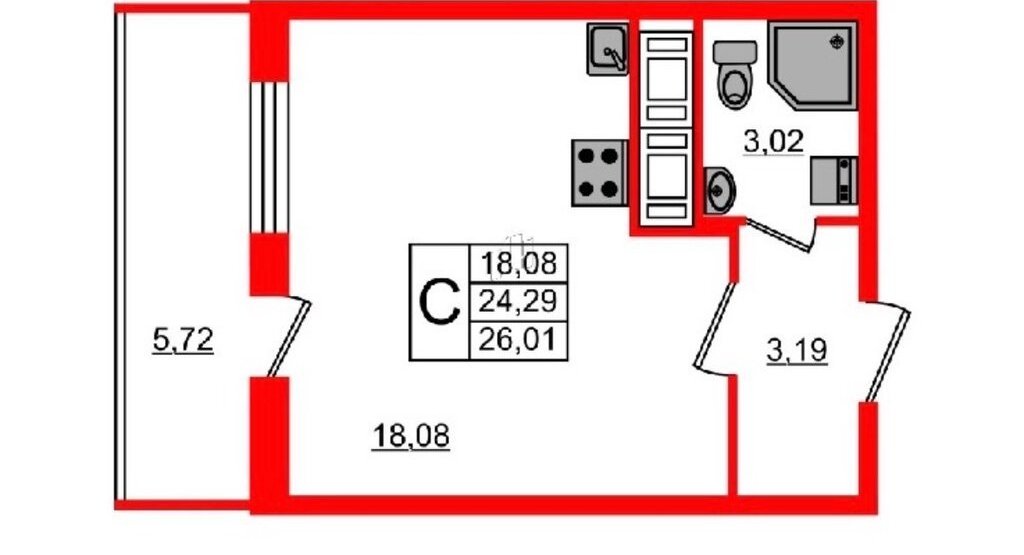 — Просторная студия 24,29м² с удобной планировкой;