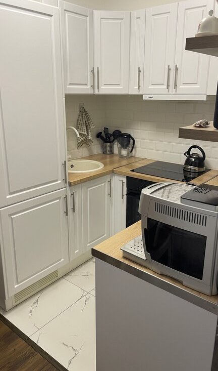 — удобная кухня, вся техника встроенная, все продумано до мелочей