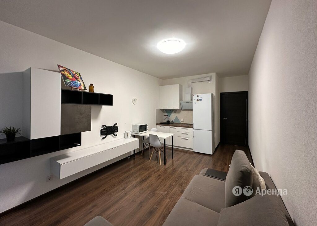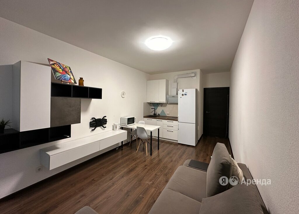 Сдаётся студия площадью 25 кв.м. с евроремонтом на 2 этаже в 24-этажном доме на срок от 11 месяцев. Из техники есть: