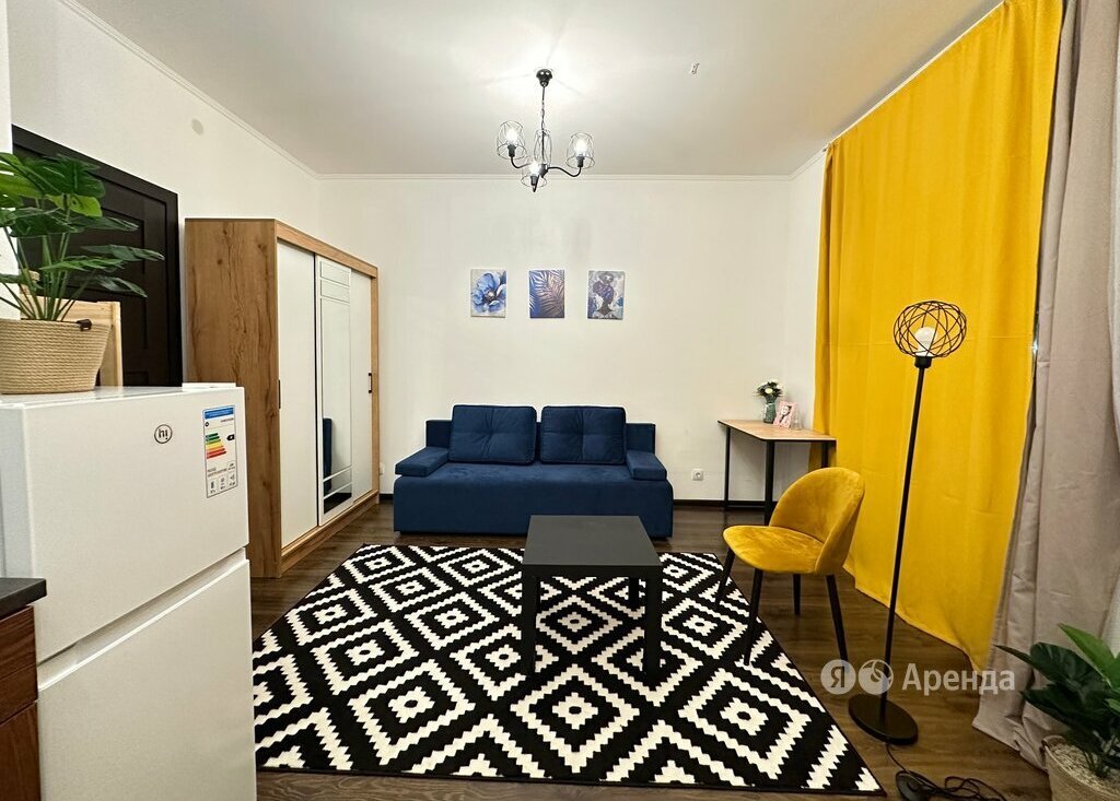 Сдаётся студия площадью 35 кв.м. с евроремонтом на 2 этаже в 7-этажном доме на срок от 11 месяцев. Из техники есть: