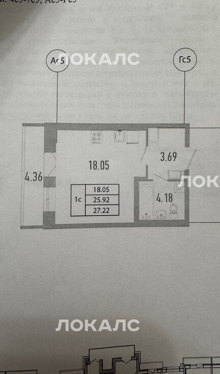 Квартира-студия: Санкт-Петербург, Полевая Сабировская улица, 45к1 (28 м²)