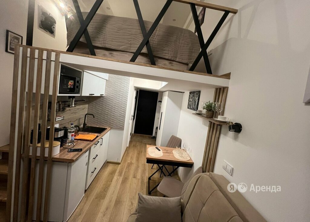 Сдаётся студия площадью 29 кв.м. с дизайнерским ремонтом на 3 этаже в 6-этажном доме на срок от 11 месяцев. Из техники есть: