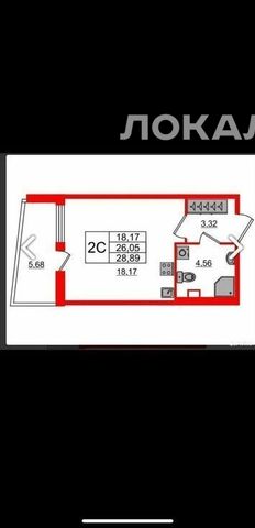 Квартира-студия: Санкт-Петербург, проспект Авиаконструкторов, 69 (26 м²)