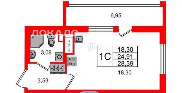 Квартира-студия: Санкт-Петербург, проспект Авиаконструкторов, 69 (32 м²)