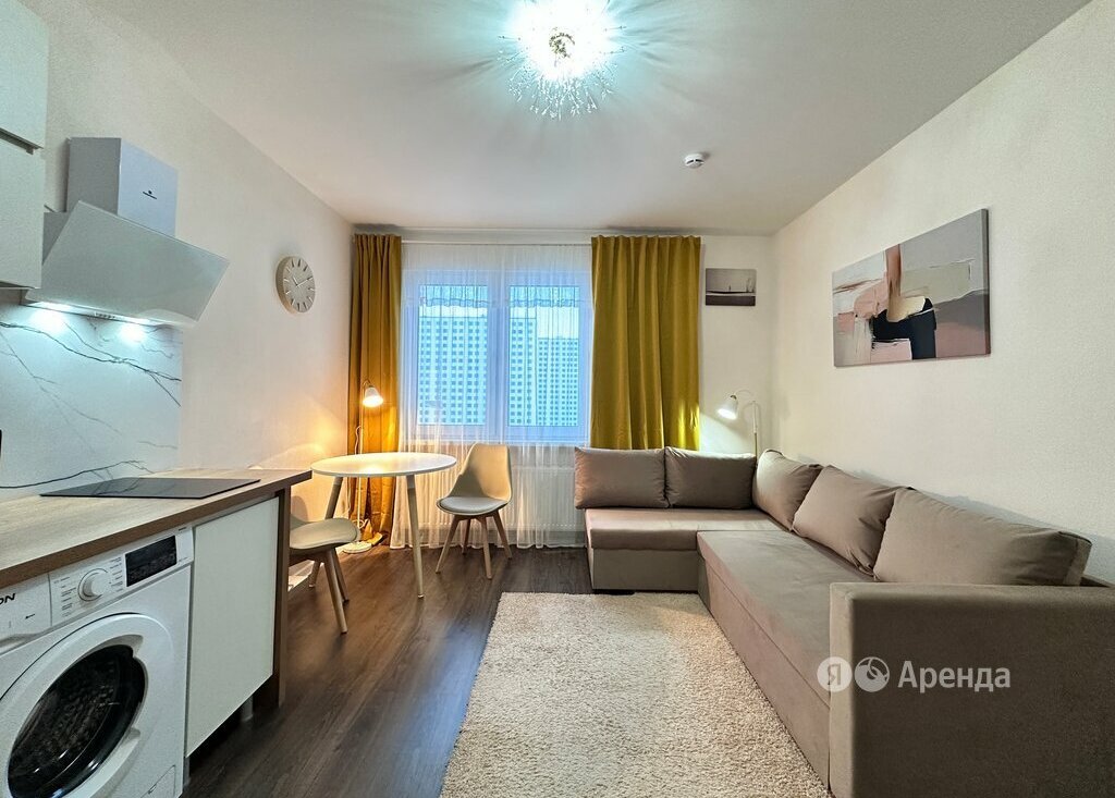 Сдаётся студия площадью 21 кв.м. с евроремонтом на 16 этаже в 18-этажном доме на срок от 11 месяцев. Из техники есть: