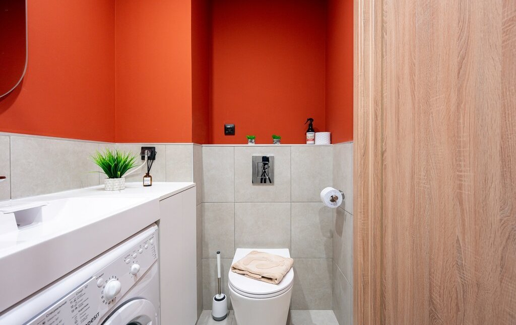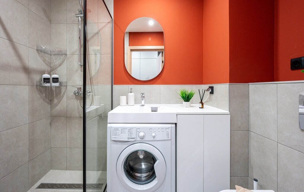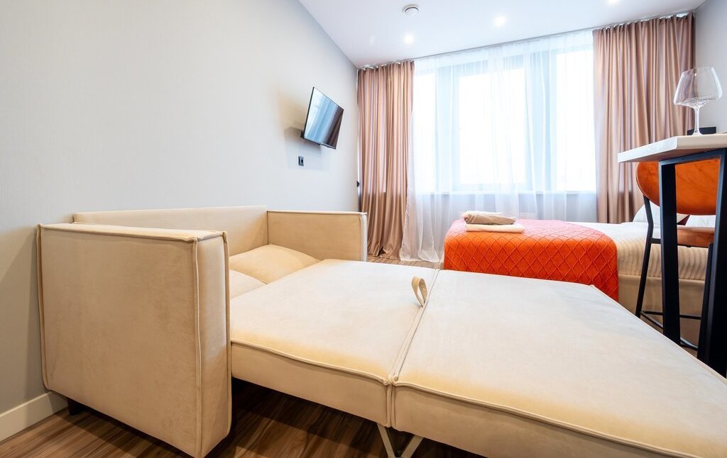 4 спальных места: двуспальная кровать (140х200) и диван-кровать(120х190). Есть стиральная машина, холодильник, варочная панель, микроволновка, телевизор, чайник, посуда, столовые приборы. Все остается.