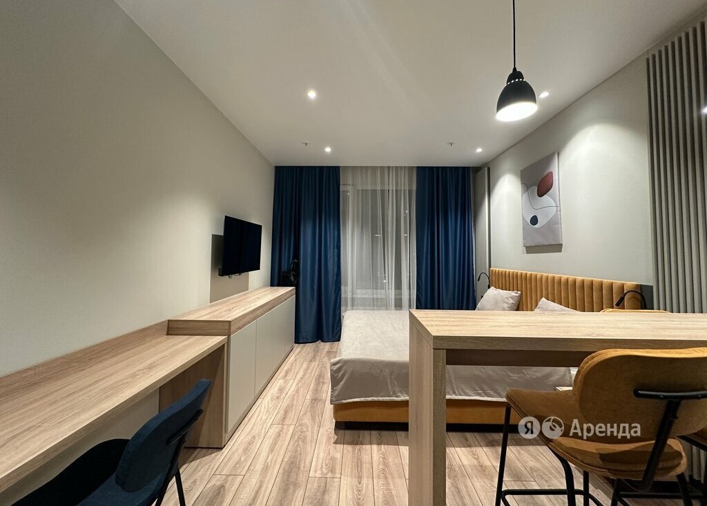 Сдаётся студия площадью 25 кв.м. с дизайнерским ремонтом на 14 этаже в 14-этажном доме на срок от 11 месяцев. Из техники есть: