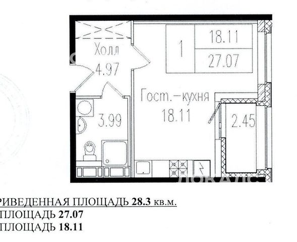 Квартира-студия: Санкт-Петербург, проспект Обуховской Обороны, 195 (28.5 м²)