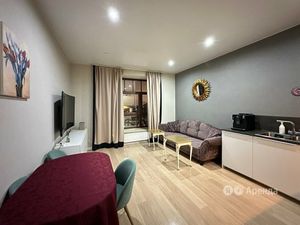 Сдаётся студия площадью 24 кв.м. с евроремонтом на 2 этаже в 8-этажном доме на срок от 11 месяцев. Из техники есть: