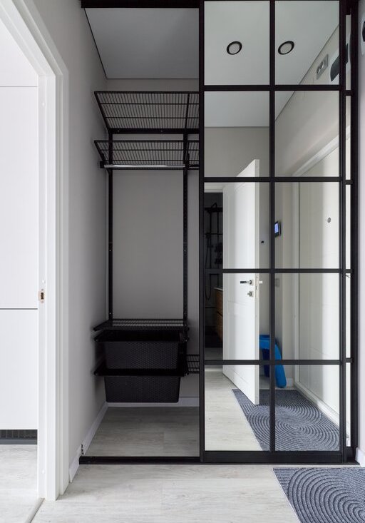 🕛В комнате установлена гардеробная для хранения вещей.