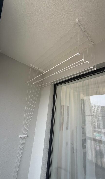 Техника: телевизор, стиральная машина, пылесос, утюг, гладильная доска, подвесная сушилка для белья.