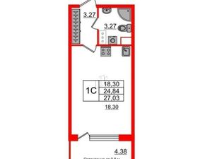 Квартира-студия: Санкт-Петербург, проспект Обуховской Обороны, 36 (27.03 м²)