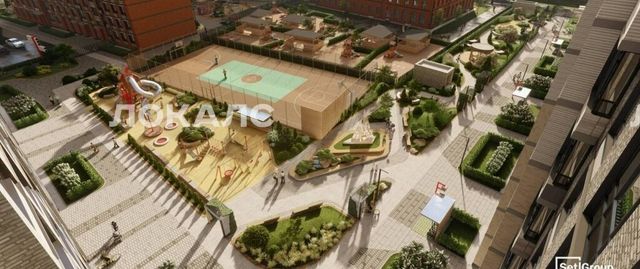 Собственный детский сад на 110 мест с бассейном – прямо на территории комплекса, стадион, кафе и магазины на первых этажах, закрытый от машин и посторонних двор с садом камней и фонтаном, спортивная площадка и 4 детские зоны с горками, тоннелями и качелями – рай для детей!