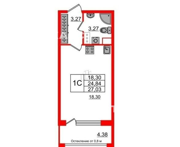 Квартира-студия: Санкт-Петербург, проспект Обуховской Обороны, 36 (27.03 м²)