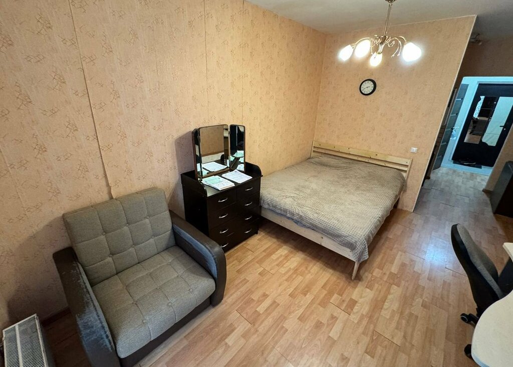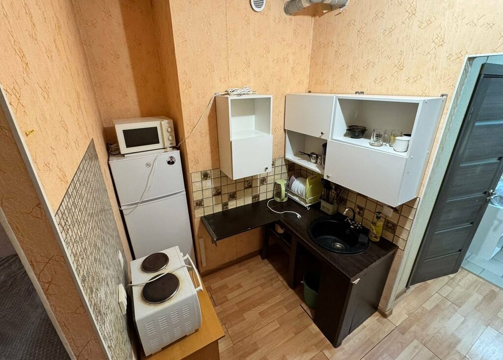 Квартира оборудована комфортным спальным местом, просторным шкафом для вещей, компьютерный стол, кухонный уголок с холодильником и небольшой двухкомфорочной плитой.