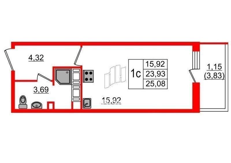 Квартира-студия: Санкт-Петербург, проспект Ветеранов, 171к5 (23.6 м²)