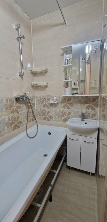 Сдается уютная, чистая и очень светлая студия на 3 этаже 12 эт. дома. Главная фишка, которую оценят семьи с детьми и любители комфорта: вместо стандартной душевой кабины мы установили полноценную ванну. Это редкость для студий!