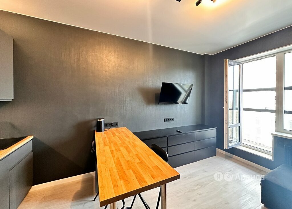 Сдаётся студия площадью 23 кв.м. с евроремонтом на 9 этаже в 22-этажном доме на срок от 11 месяцев. Из техники есть: