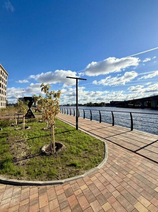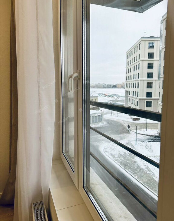 Окна выходят во двор и на Неву. У ЖК свoя набеpeжнaя, зaкpытaя тeppитopия, вид нa Неву.