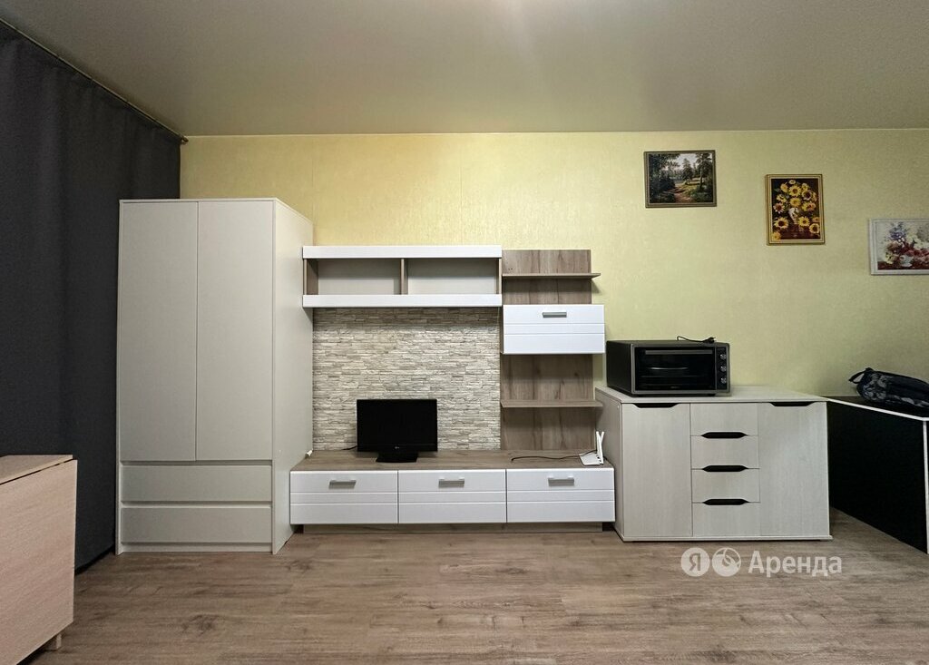 Сдаётся студия площадью 27 кв.м. с косметическим ремонтом на 9 этаже в 23-этажном доме на срок от 11 месяцев. Из техники есть: