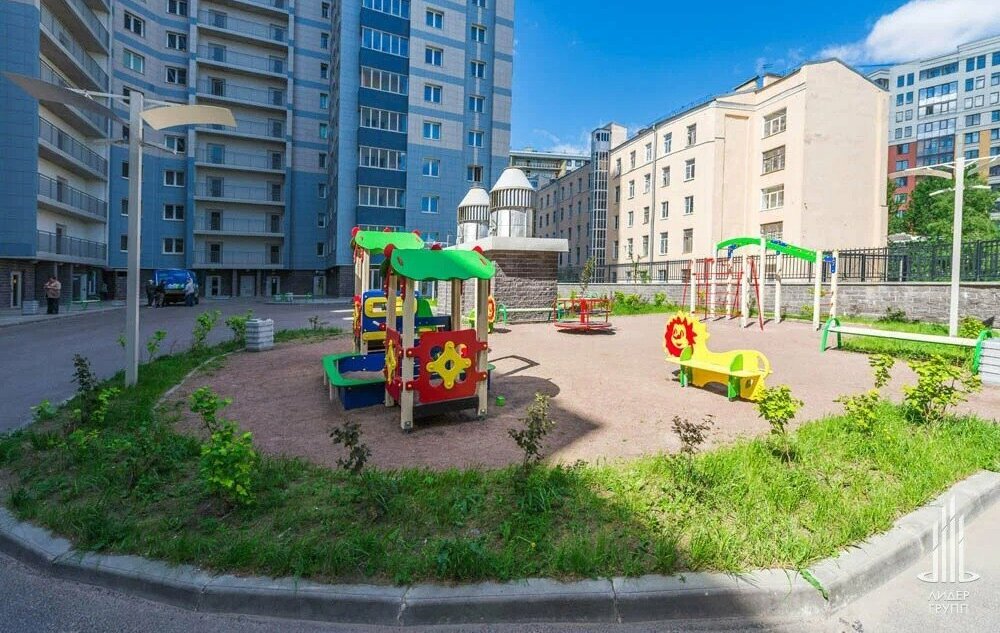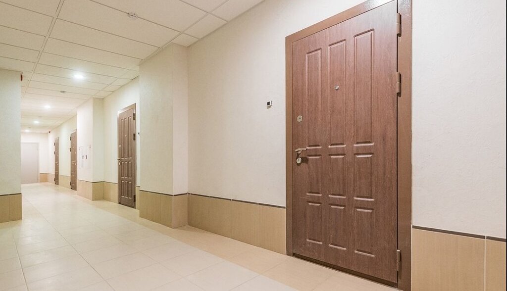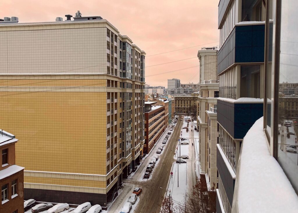Новый дом с красивыми парадными и консьержем, закрытый внутренний двор, красивый вид из окна.