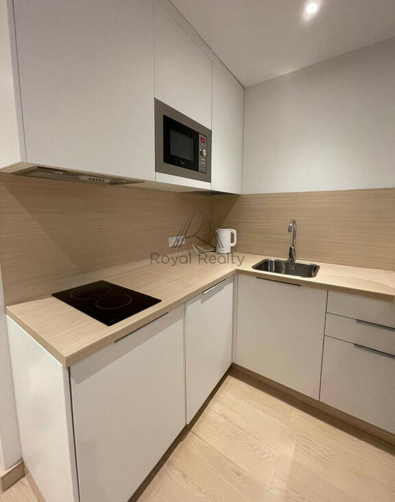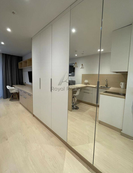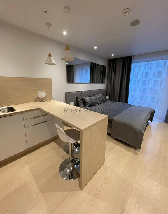 Светлая, просторная студия на 8 этаже современного комплекса. Окна во внутренний двор без машин — тихо и комфортно.