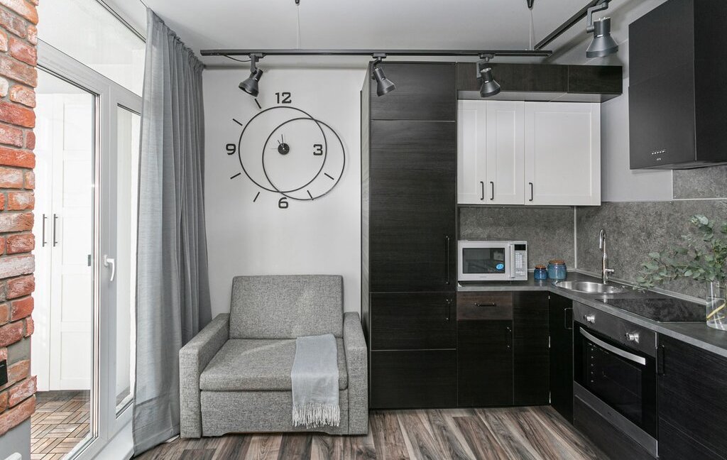 При относительно небольшой площади квартиры создано удобное и современное жилье, отвечающее всем требованиям.
